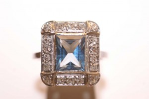 PIECE UNIQUE PLATINE DIAMANTS ET TOPAZE BLEUE
